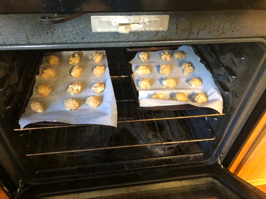 Scoop 2-inch cookie balls on to parchment-lined cookie tray.