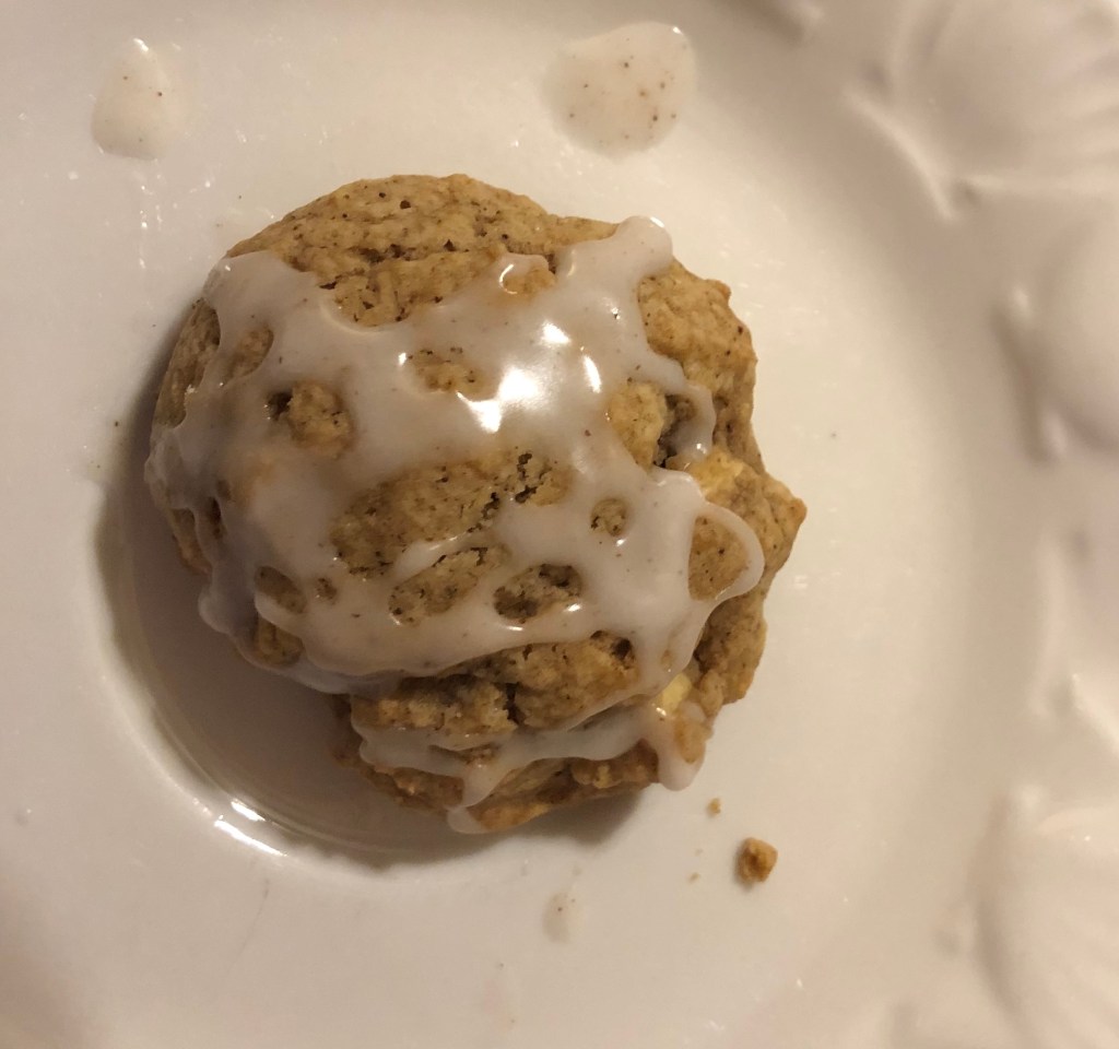 Cinnamon and apples are fall-forward flavors, and cookies are always welcome. I wanted a light, fluffy cookie that had both . I used baking soda and cream of tartar to make them rise high. I snuck in a little clove to give them a more warming feeling. I hope you like it.