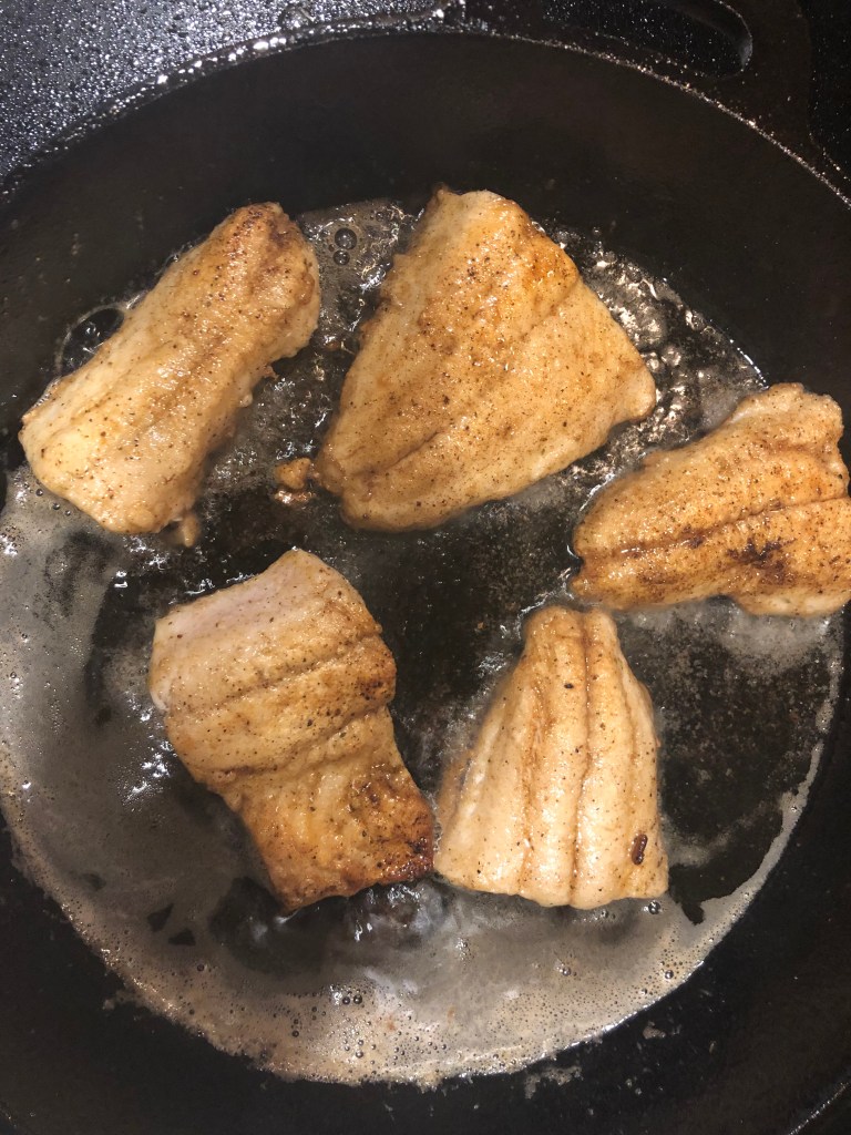 2 pounds walleye fillets, skinned and boned (I got mine at Crosby’s Crabs), and cut in 3 ounce portions (about 2 1/2 inches long)