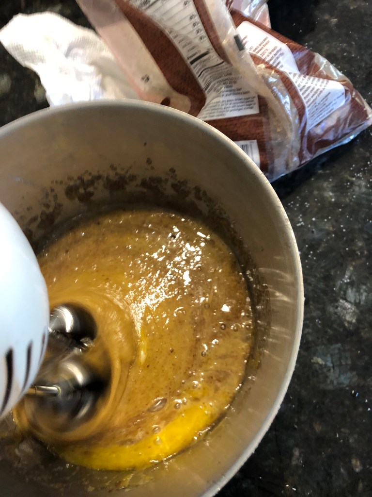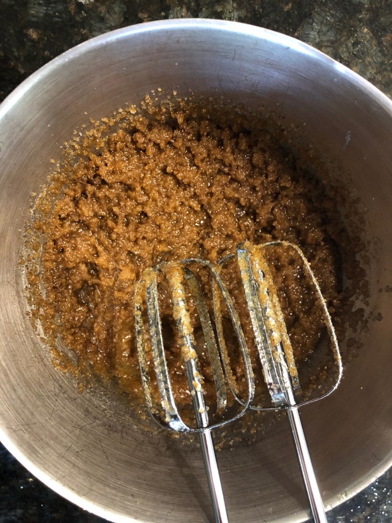 In bowl 2, add brown sugar, sugar, oil , melted butter, vanilla extract, and fireball, and beat for 2 minutes.