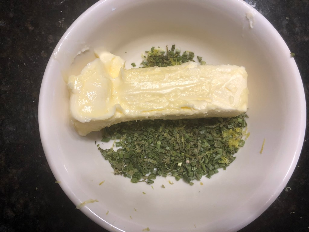 I’m hooked on puns! While at my favorite fish monger, Crosby’s Crabs, I was directed to the fresh fish counter, and my guide pointed to the fresh shark. Shark! Shark! So I said, “ I’m in,” and he got me a nice thick piece. Now, I had had shark 40 years ago , but I was unimpressed because I thought it had a very strong flavor. The thing I didn’t know is you have to soak it in milk for at least 2 hours. After doing that and adding an herb butter on top, we have a winner. I hope you like it.