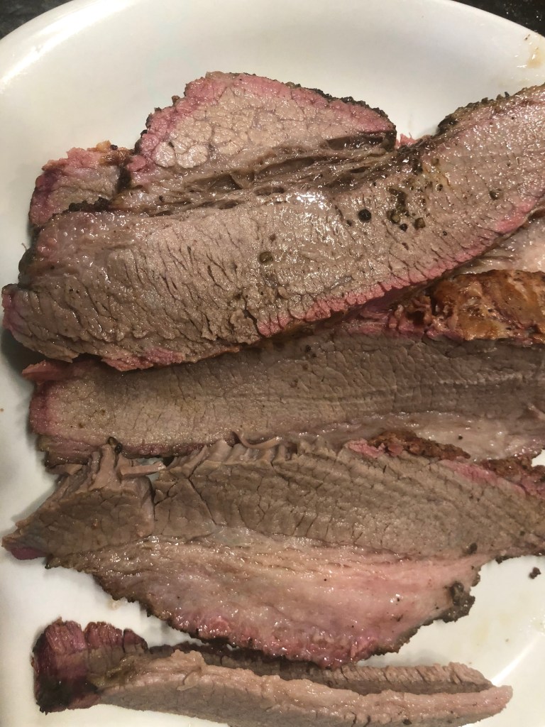 In an earlier episode on this blog, I wrote that I purchased a Z Grill smoker. I have used it for simple things, but this was my first large cook. To me, the most challenging cut of meat is a brisket. Temperature control is the most important on this cut, and room for error is slight. So I went online for some advice and consulted the BBQ master Myron Mixon; I got the basics of his rub which I changed – after all, it’s me. So we had a delicious brisket for 15, but there were only 5 of us. We have left overs! I hope you like it.