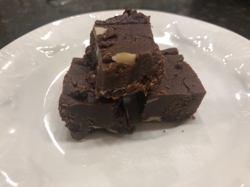 This is my final experiment of the 2020 holiday season. It’s not Mackinac fudge, but it still tastes really good. It is chocolate-forward plus the coffee and the almonds bring it all together as a holiday treat. I hope you like it.