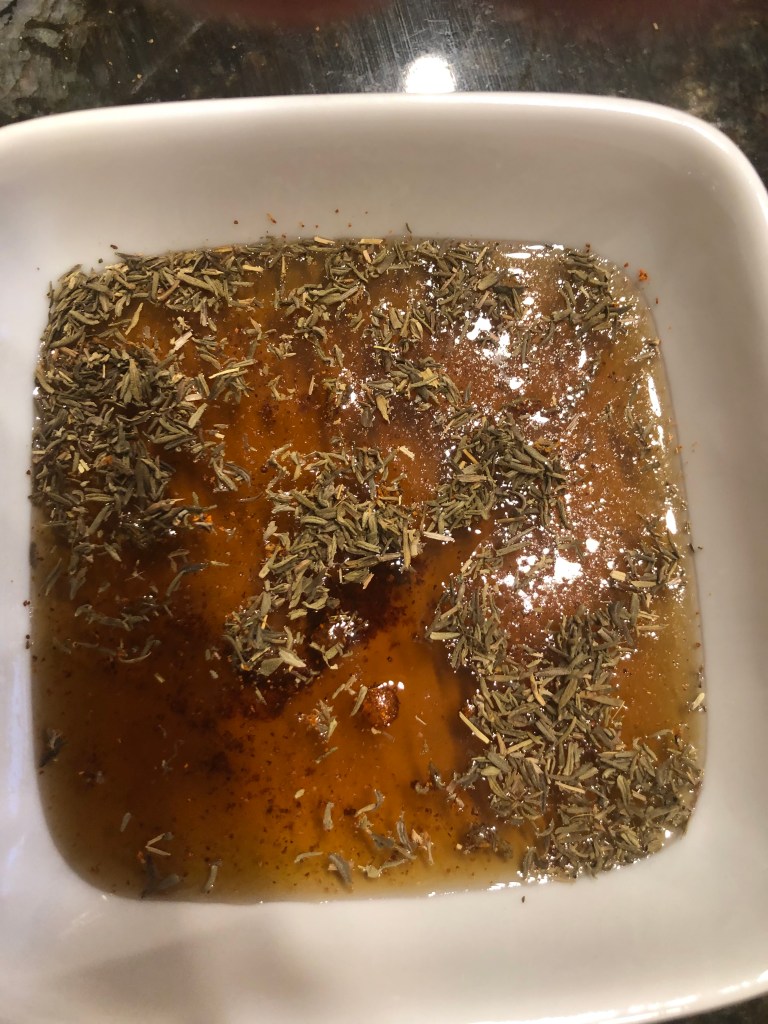Mix maple syrup, thyme, and cayenne in a bowl.