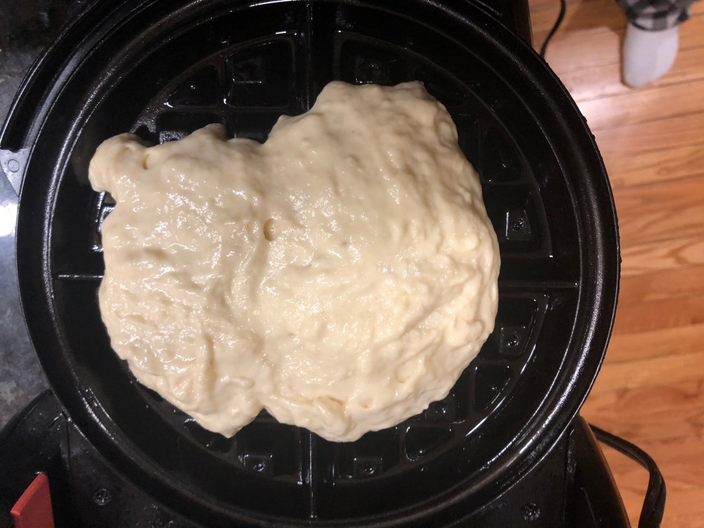 Add waffle batter to the waffle iron and cook per waffle iron directions.