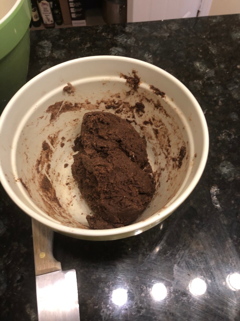 In bowl 2, cream butter, brown sugar, and sugar; add egg and vanilla or chocolate liqueur.