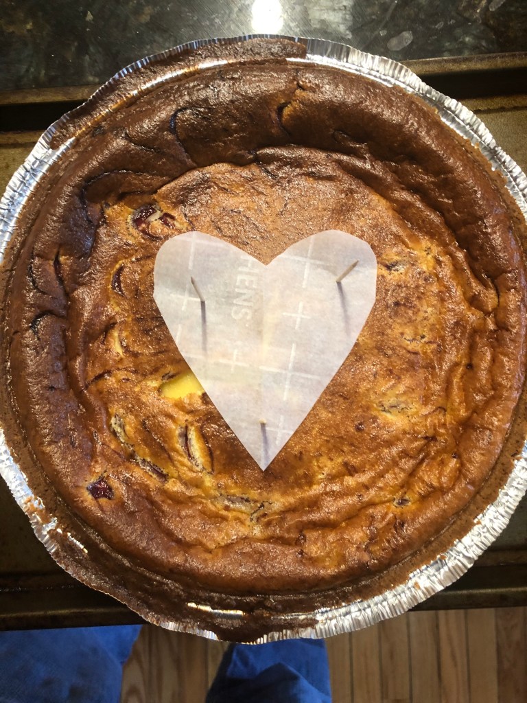 We had an ice storm yesterday, but it’s Valentine’s Day today, so what do we do? Make a quick and easy cheesecake! After a pantry and refrigerator raid, here’s what I came up with. .The canned cherry swirl is just a nice bonus.