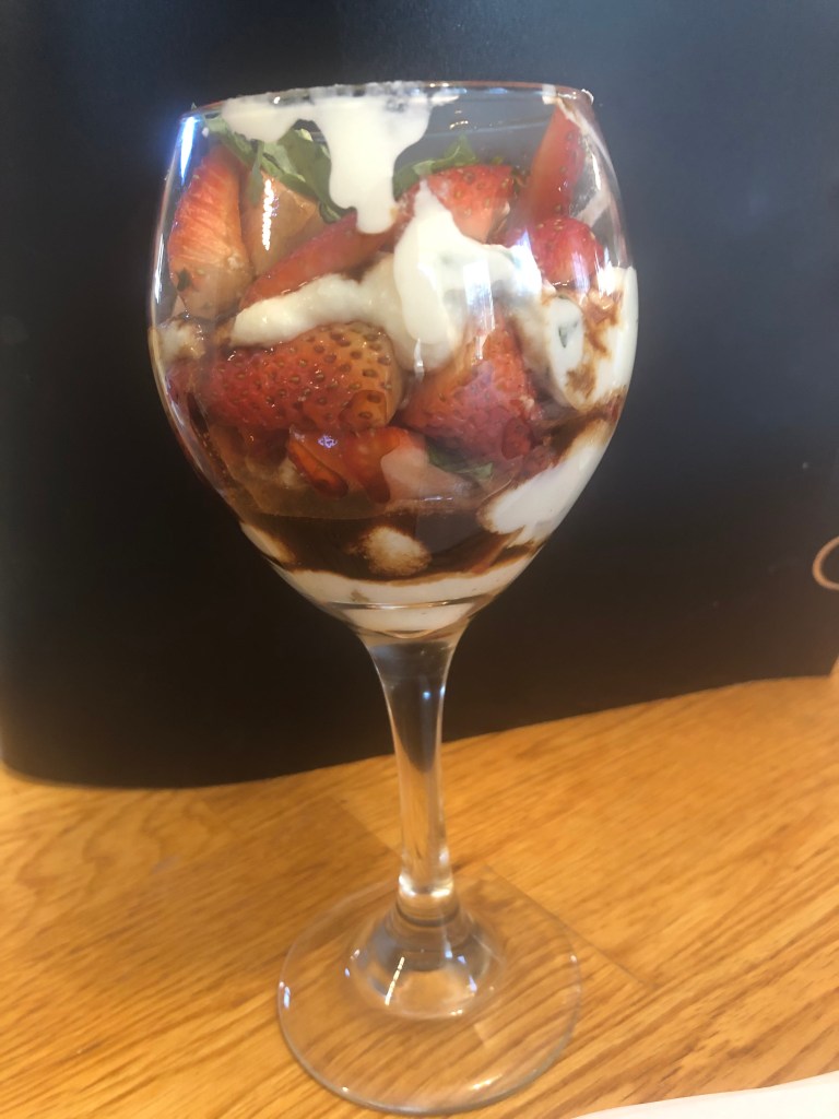 If you live in Florida around Plant City, you have most likely gone to the Strawberry Festival. If you look at the place of origin, you will find that most of the strawberries this time of year come from Florida. So why don’t we use some in a parfait? The unique flavor of chocolate balsamic vinegar with the sweet ricotta makes this perfect for brunch. I hope you like it.