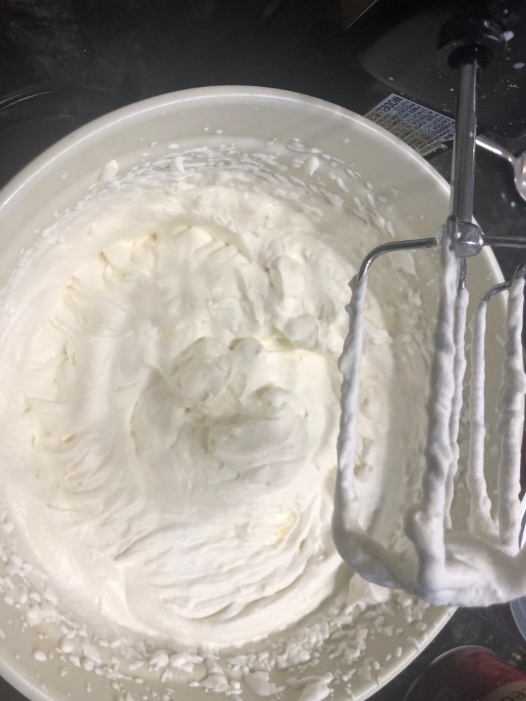 Then fold that mixture into remaining whipped cream. Continue folding until light and fluffy.l