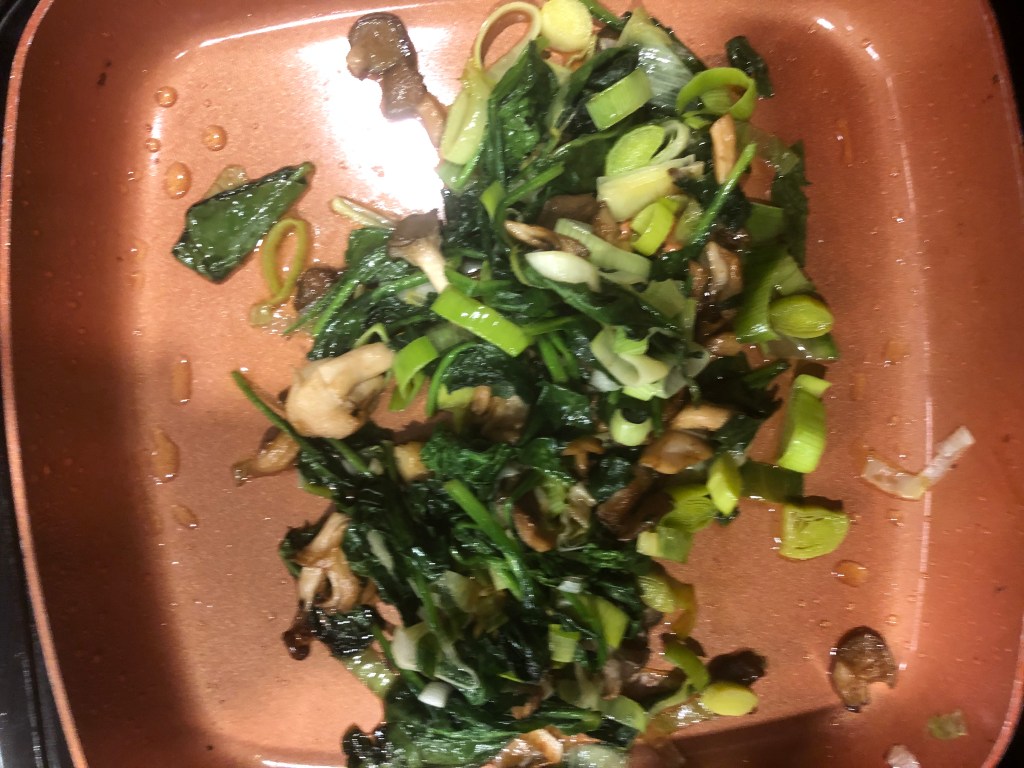In a large skillet on medium, heat olive oil and the mushrooms; cook for 5 minutes until most of the water is gone.