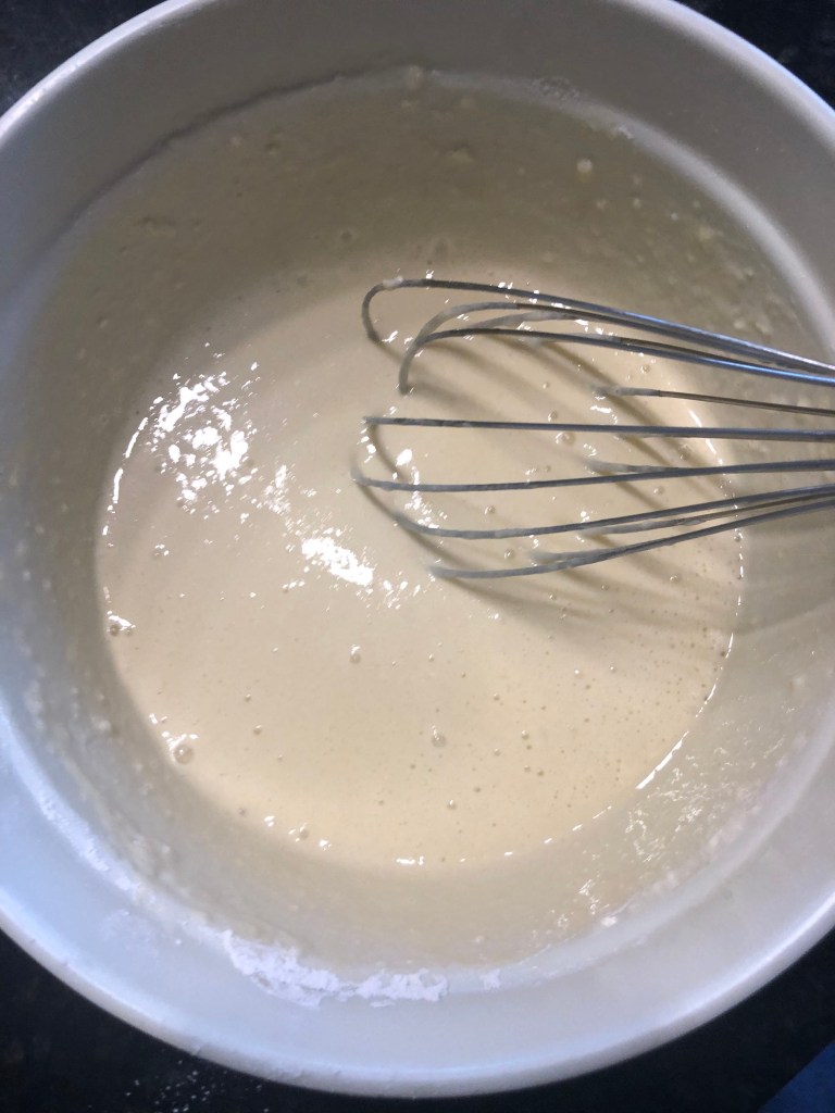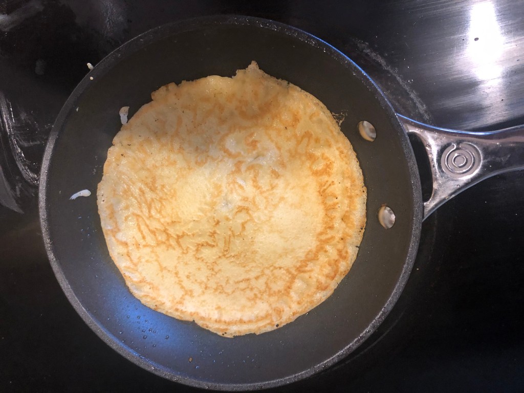 Add 3/8 cup of batter and swirl until bottom of pan is coated with batter; when the edges brown, flip over and brown on second side.
