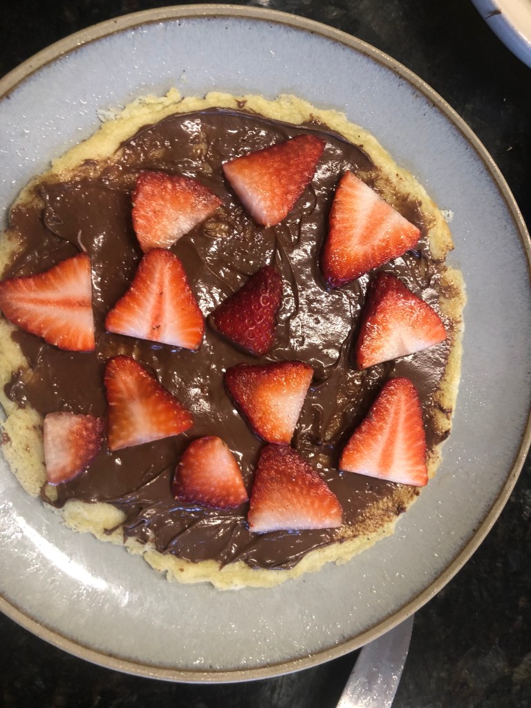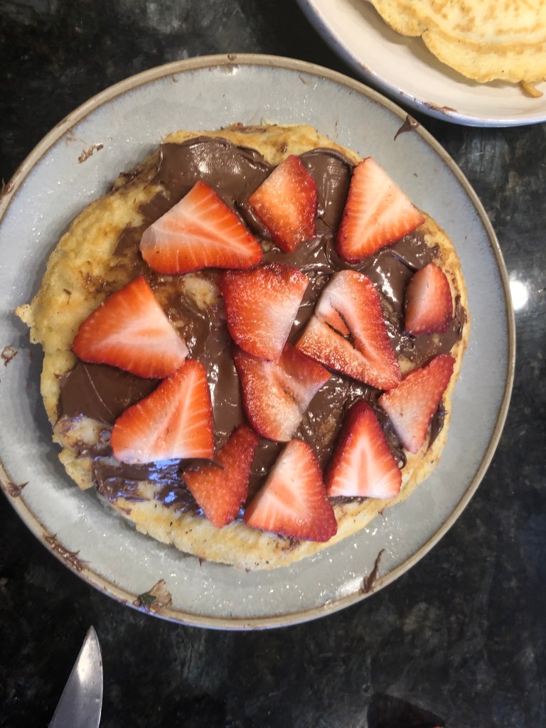 It’s almost spring! Strawberries are springy, and so are light crepes! Chocolate hazelnut spread – no so much, but it works with the other two so what the heck. How about a crepe cake? I hope you like it.