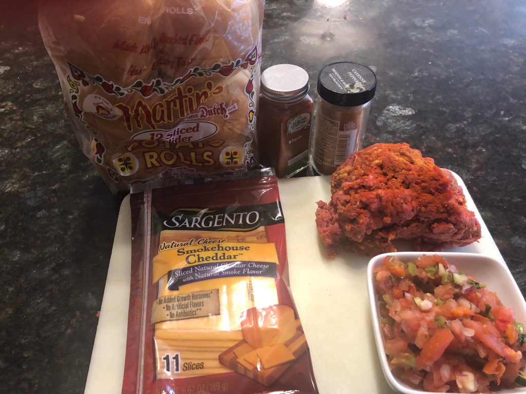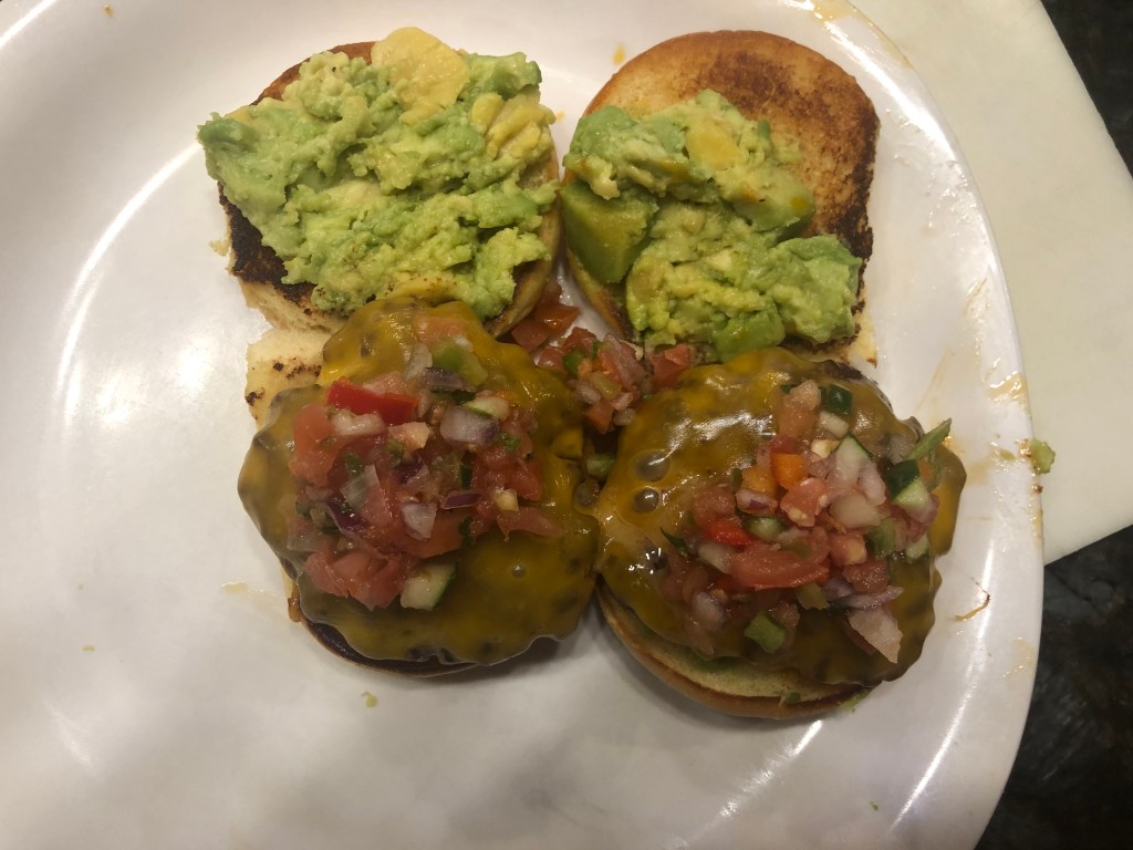 This is a treat served in Mexico. I used Happy Family Ranch’s Chorizo because well, that’s what I used because it’s great chorizo . So getting the right proportions was key. A taste test panel agreed I got it right. (Ok, it took me four tries; it only took Goldilocks three). Serve it with fresh pico de gallo and smoked cheddar. Oh, I forgot to say it was in a slider bun with some fresh avocado. I hope you like it.