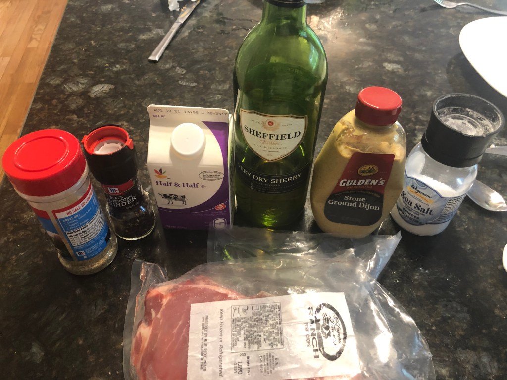 Add sherry to pan and scrape all the bits off the pan with whisk.