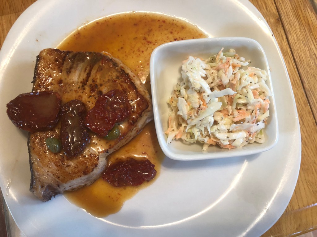 Summer is a great time for fresh fish. Grilled is great, but heating the grill, charcoal or gas each takes time. I can whip this up quickly, and it has great fresh taste. It’s tart and spicy with the allepo pepper.