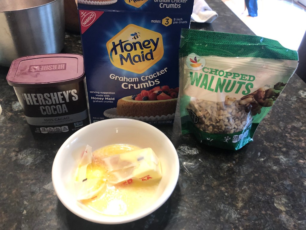 Mix nuts, cocoa powder, salt, and graham cracker crumbs.