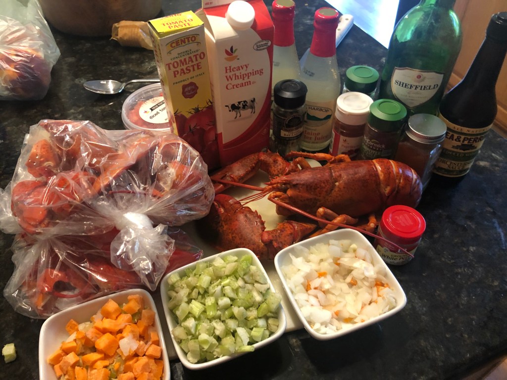 I was asked by an old high school chum if I had a lobster bisque recipe, and I realized that I was in a crab rut. Living near the Chesapeake, crab is everywhere and the main shell fish. So I’ve been ignoring the Maine shellfish. Here is my take on the classic dish. Now, this is where having a quality seafood provider like Crosby’s Crabs comes in handy. Fresh lobsters and shells make this dish rock. Now, some use brandy and wine, but I think sherry is a better match for lobster. I also added bacon which is not a traditional ingredient but is alway a welcome guest at my parties. It’s not a heavy as some because it’s for summer hope you like it.