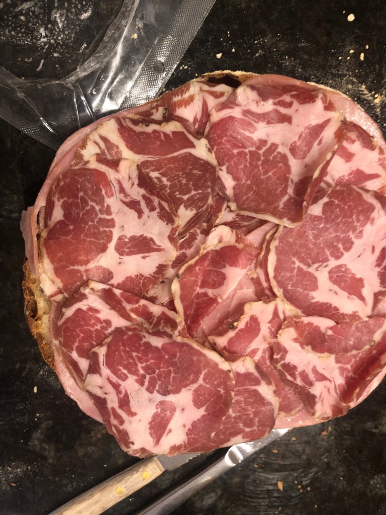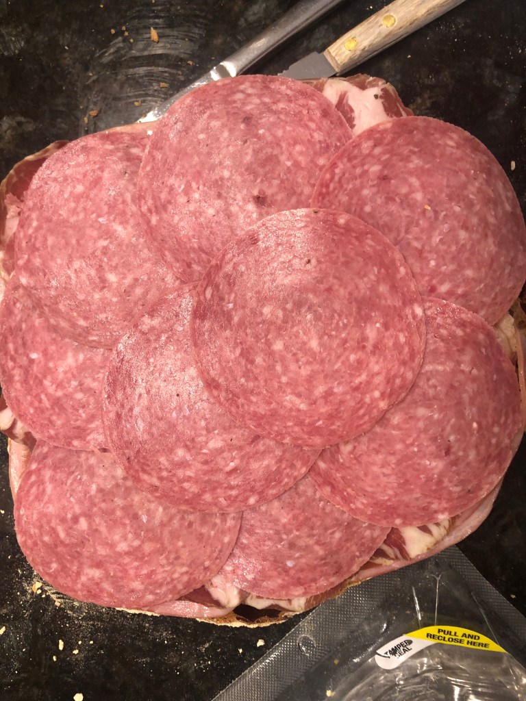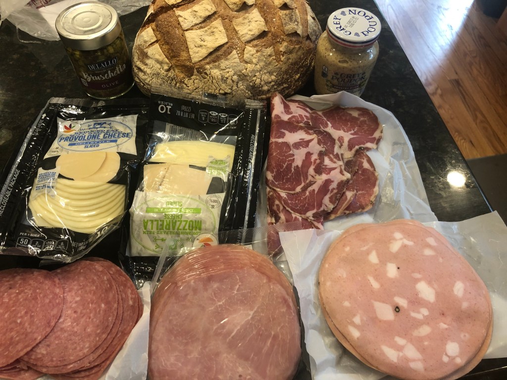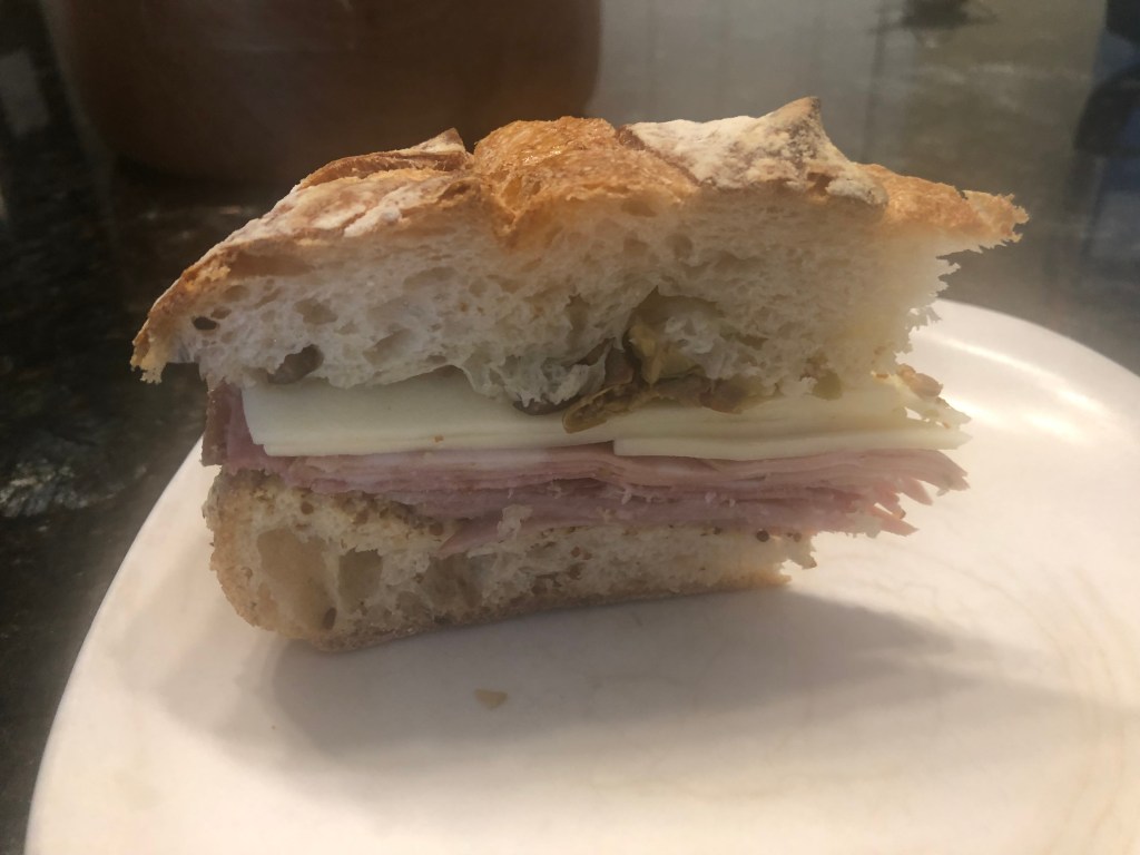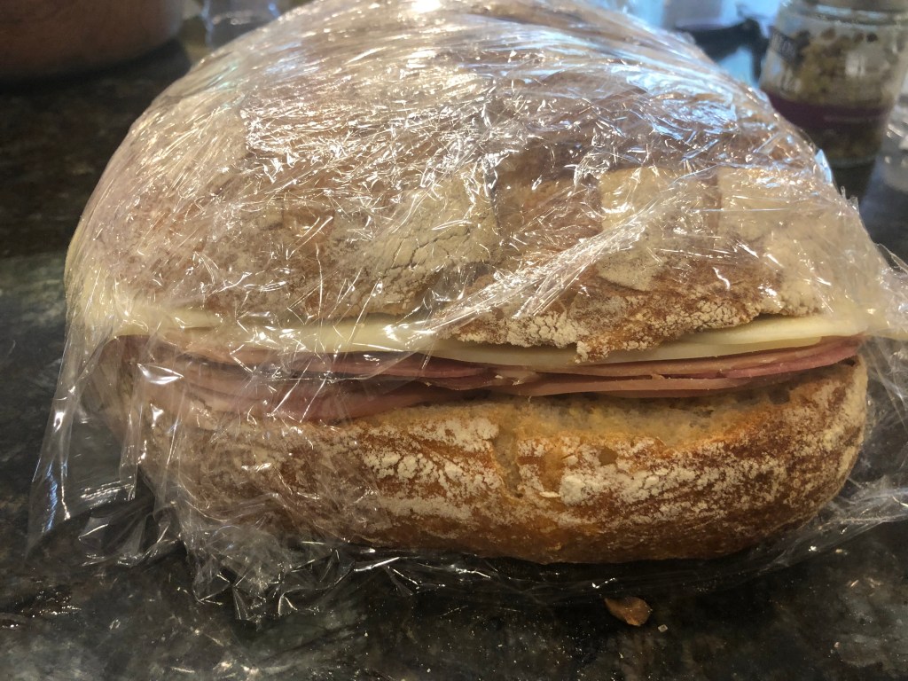 Everyone knows that New Orleans is known for the po boy sandwich but have you ever heard about the muffuletta? This is the party sandwich; it serves 10 or 5 of my friends. It has a sturdy loaf with a ton of flavorful meats and cheeses. Some zesty mustard and zippy olive spread and you have this classic. I hope you like it.