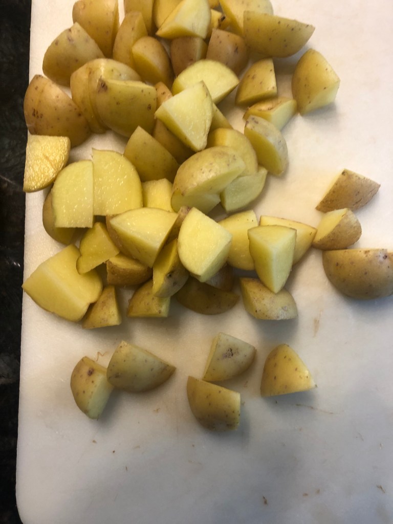 Place cut potatoes in microwave and cook on high for 4 minutes.