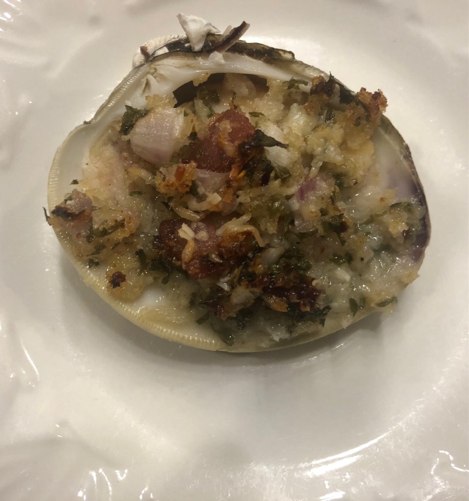 This is another old school dish your parents might have ordered on a night out on town. You still might find it in that steakhouse at the beach where the locals go, you know the one with the dark wood panelIng and the bad lighting. Well it’s still is a classic and still tasty if you remember to clean the clams and use quality ingredients from trusted sources like Crosby’s Crabs and Happy Family Ranch. I hope you like it.