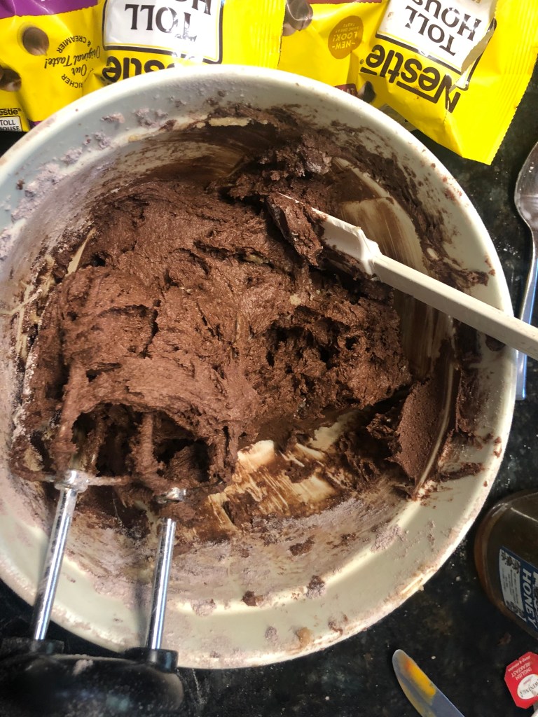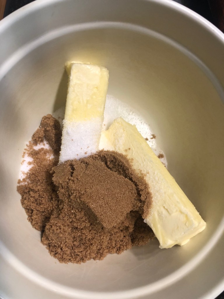 In bowl 1, cream butter, brown sugar, and sugar until smooth.