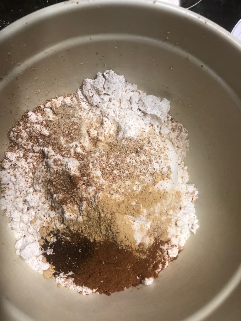 In bowl 1, mix flour, baking soda, salt, cinnamon, ginger, nutmeg, clove, and pepper.