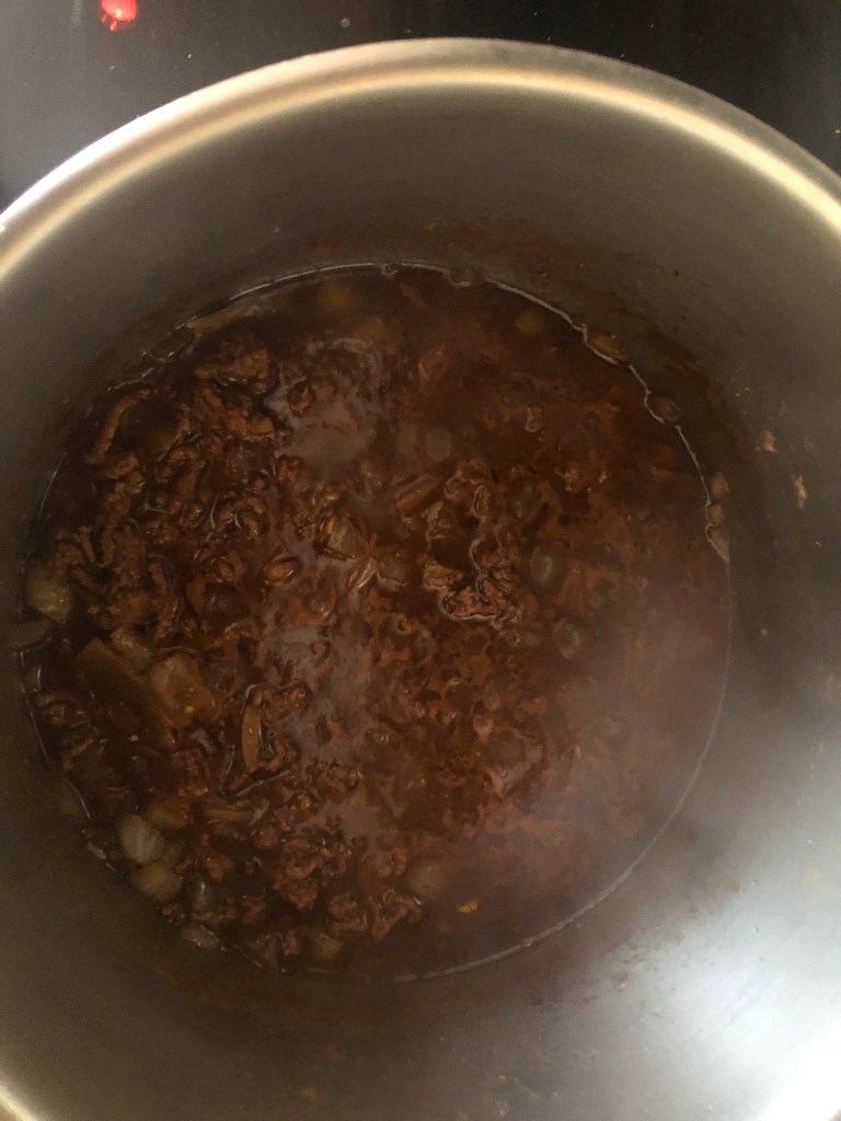 Add beef stock and simmer for 1 hour on medium low. Taste for seasoning. Now you can add any salt you may need or honey if the chili is too spicy.