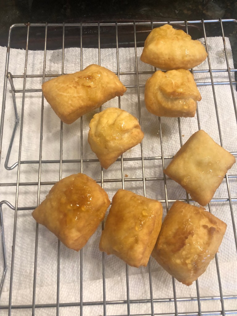 Set up one baking sheet lined with paper towel and one rack to sprinkle powdered sugar.