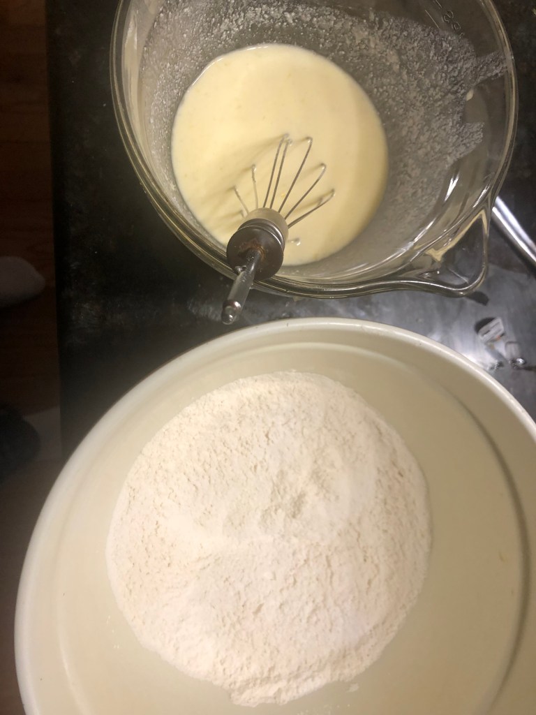 In bowl 2 mix eggs, sugar, milk, ricotta, lemon zest, and lemon juice.