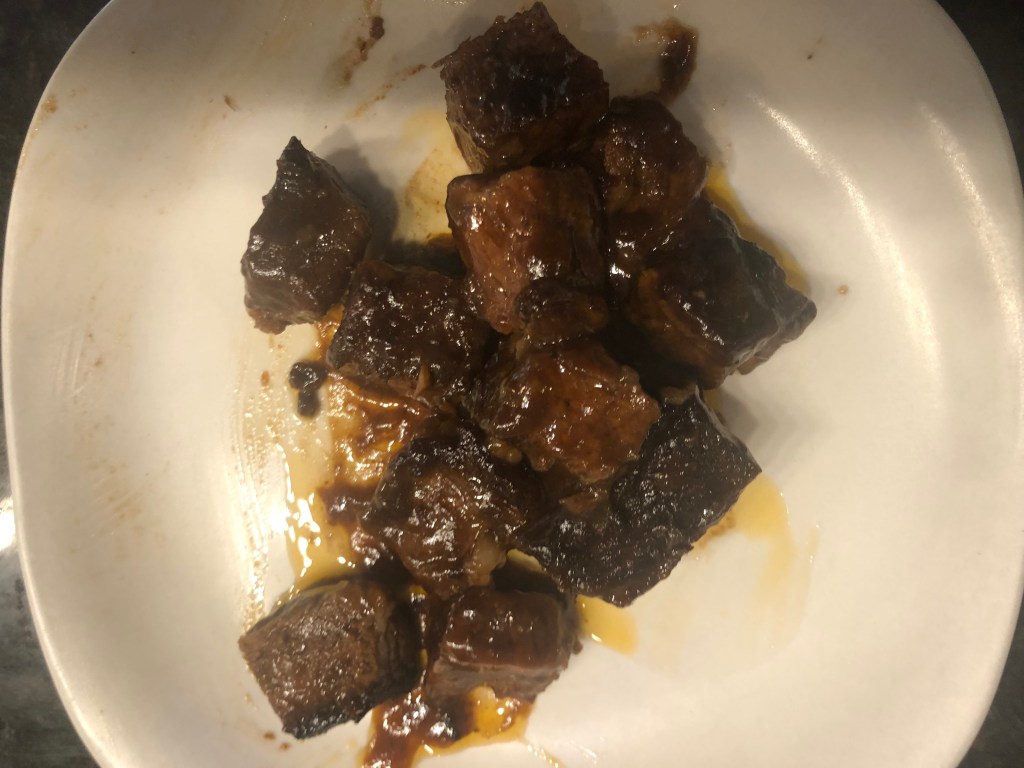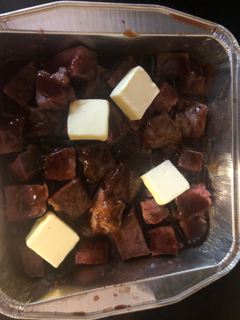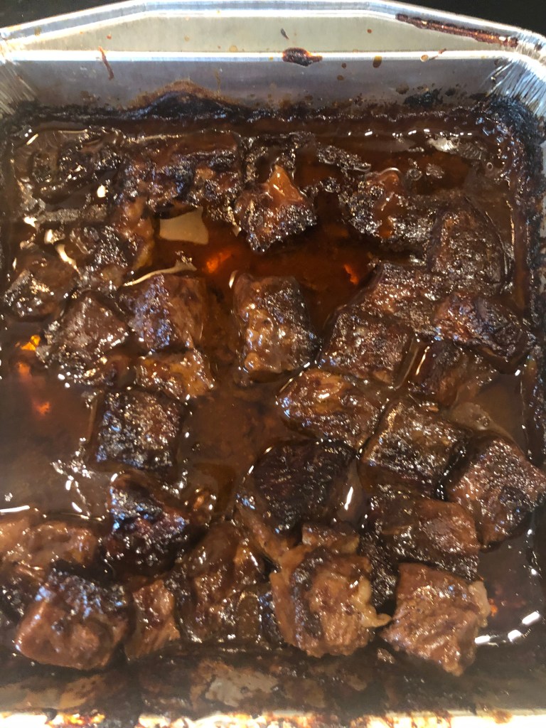 I saw this on-line and thought it needed my spin. I used beef short ribs instead of the normal chuck roast. Now, in Texas brisket is only salt and pepper, maybe sometimes garlic and chili powder. I did my few tricks like adding Old Bay and garlic powder. I also cooked the short ribs in beef stock to intensify the beef flavor. I would suggest using a BBQ sauce that has sweet with some heat. Now, an oven-safe meat thermometer is critical because time is important, but temperature is more important. I hope you like it.