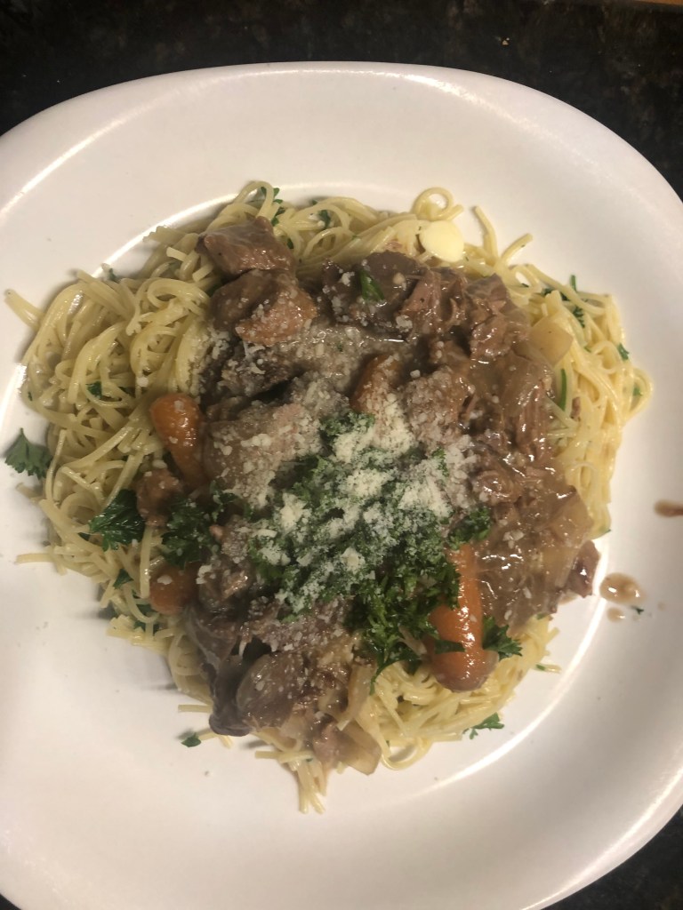 I haven’t used my German tastebuds in a while, so this is from my dad’s side of my food family. Now, my mash up on this one is the addition of beef heart. So, kinda like a steak and kidney pie without the crust and no kidneys, so not really. There is the sour taste with the vinegar and the sherry. A crock pot would be perfect for a long cook for 3 hours. I hope you like it.