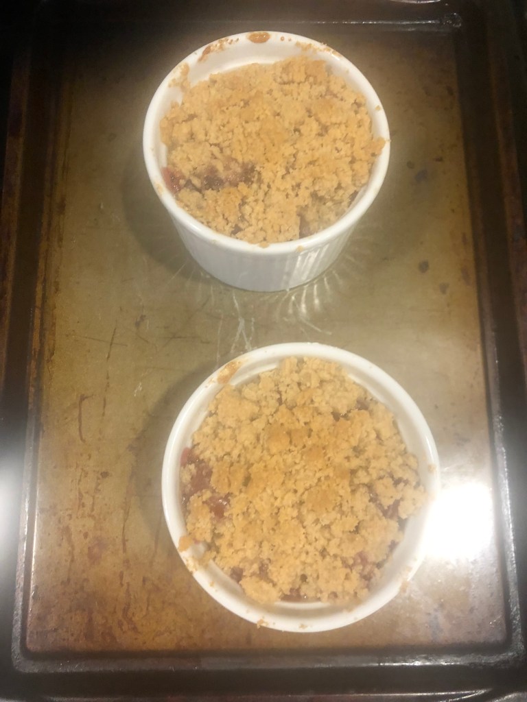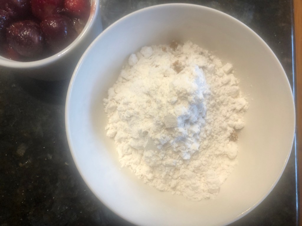 As a kid you could sit me down with bowl of cherries, and I would be a happy boy. I love when cherries are in season, and I have been using them a lot. That brings me to this dish; when people think of crisps, apples usually come to mind. I decided to switch it up and use fresh cherries. Sweet and sour with just a hint of cinnamon with a crunchy topping. I hope you like it.
