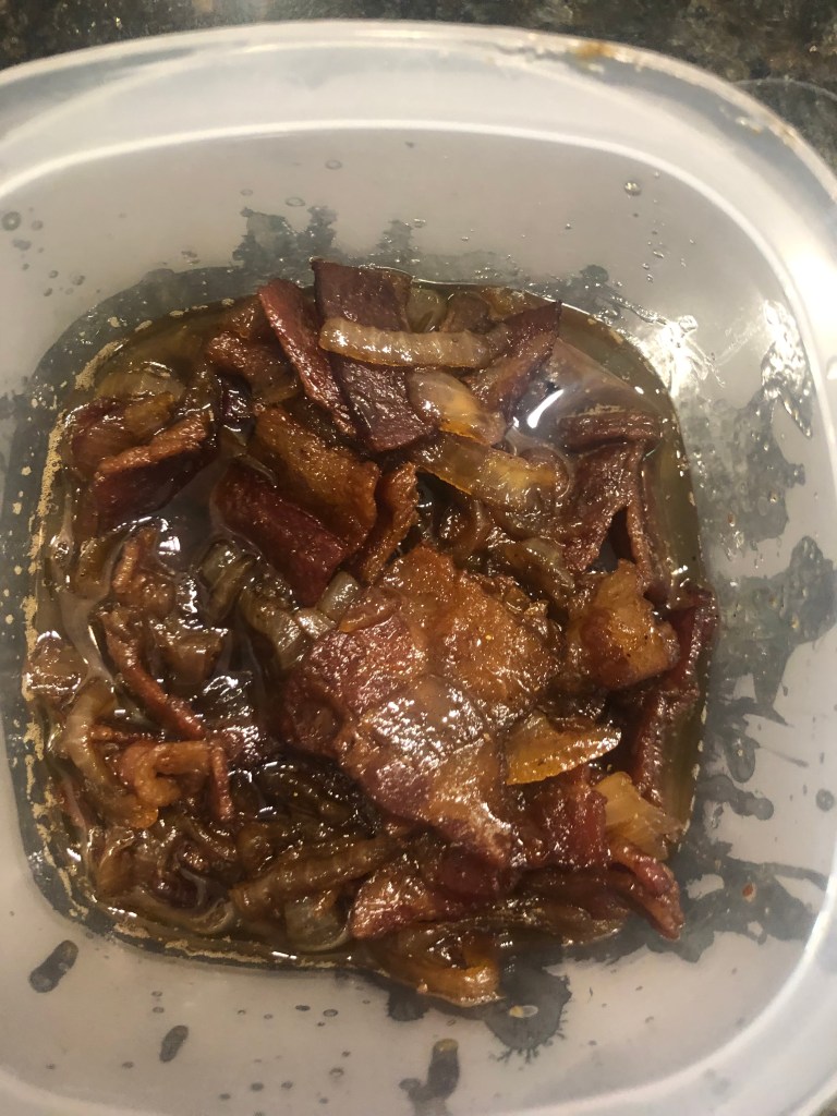 Want to up the cool factor on your burgers and chicken sandwIches? This recipe will get your taste buds working. You get bacon, sweetness from the caramelized onions and brown sugar, and the tart balsamic vinegar. It finishes with smokey chili powder, and the coffee brings a counterbalance for the sweetness.