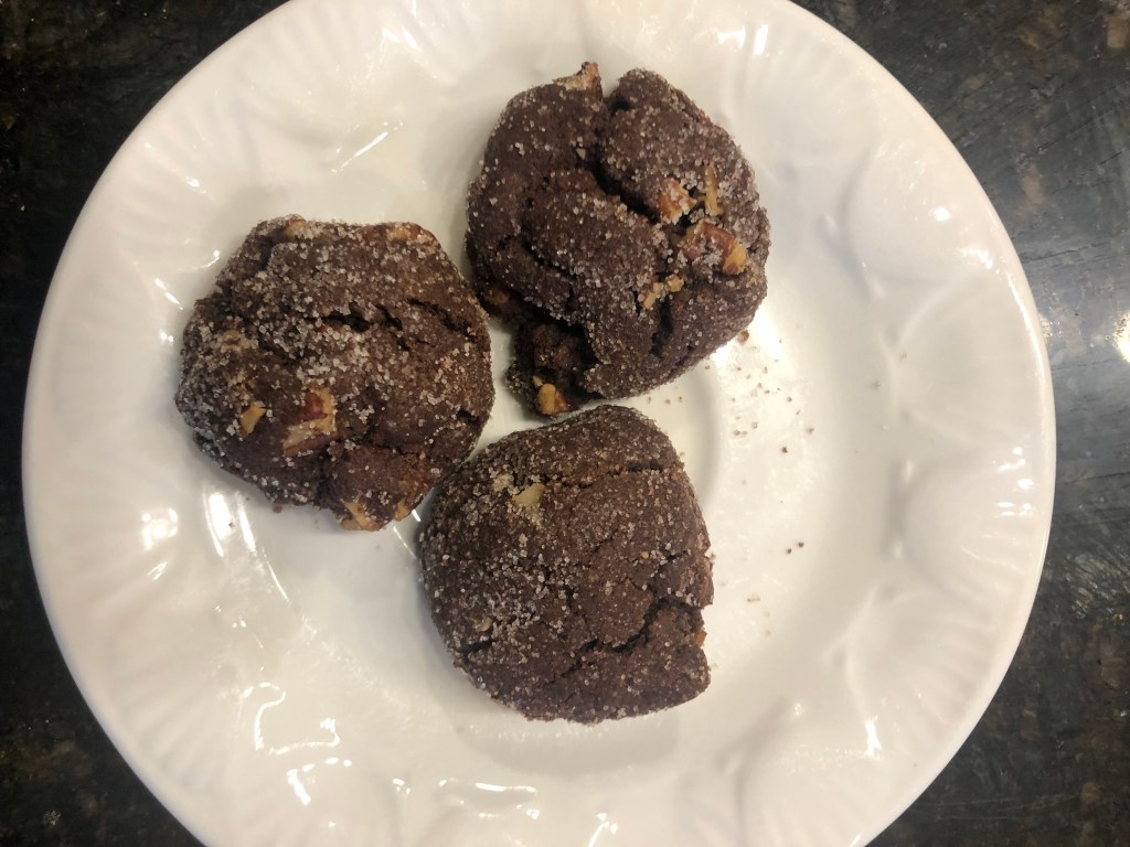 As you know, I love my farmers market and the cool things I find everywhere at the markets. In this case it’s the candied pecans from The Purposeful Pecan. I used the sweet and spicy ones in a version of a Mexican hot chocolate cookie. The cayenne plays well with the dark chocolate. The cinnamon brings extra flavor. I hope you like it.