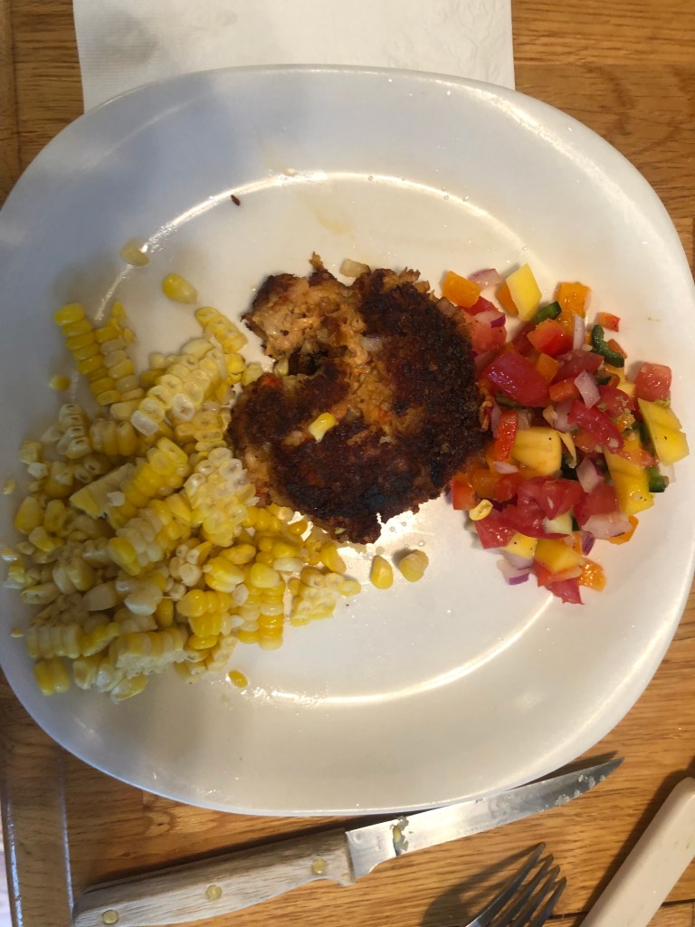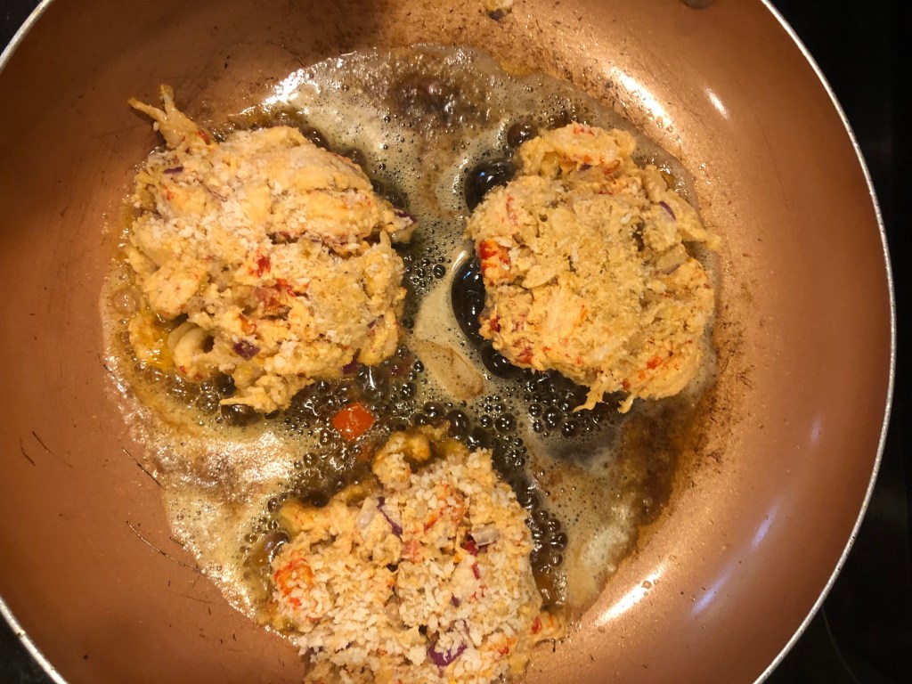 We are back in New Orleans and loving our crawfish. I was at Crosby’s Crabs and saw the package in the counter and brought it home. I used the trinity, some spice, and some mayo to hold it all together. I hope you like it.