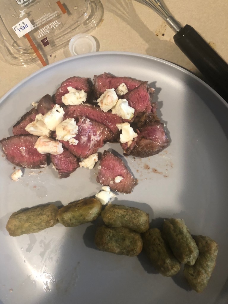 Coat steak with salt, pepper, and remaining garlic powder and salt substitute.