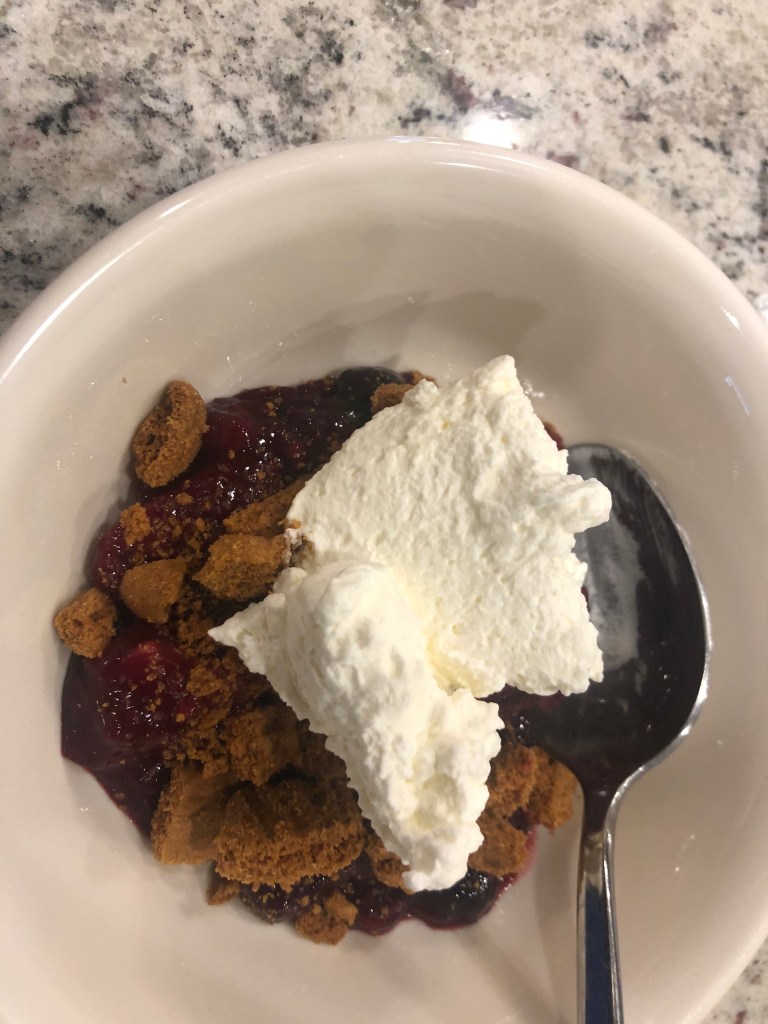 This is a lesser known Oktoberfest traditional dish. It has berries, cream, and sweeteners. I did a couple of updates; first, I added some brandy, and then I added some elderflower syrup to amp up the flavor of the whipped cream. The airline cookies are not traditional because Frederick the Great did not save his airline cookies to make his version. I hope you like it.