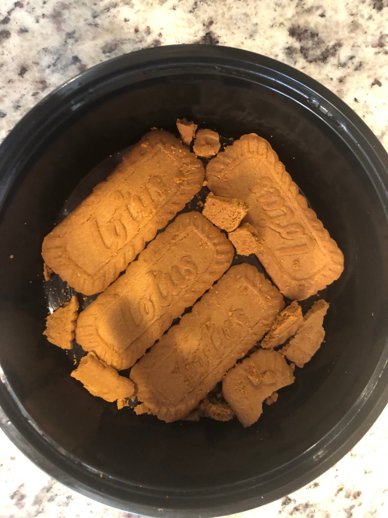 1/2 cup Biscoff cookies, crushed and 12 whole cookies.