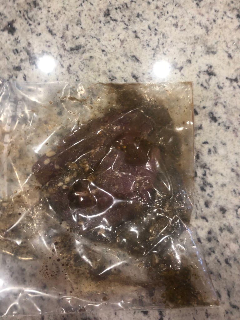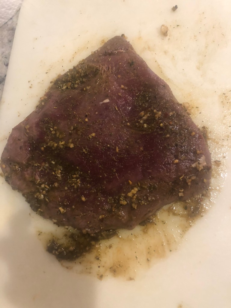 This steak has only been sold since 2000; I know my dad, the butcher, never brought one home. It sits between the chuck and the brisket, so it does little work. This is one of the most tender cuts just behind the tenderloin and the chuck eye. This is a hot and fast cut. That is why I used this steak. The marinade makes the beef beefier, and remember, add salt to your taste. I served it with 3 G mashed potatoes: green onion, goat cheese, and garlic (recipe to come later). I hope you like it.