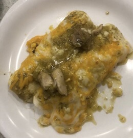 I was at the Haymarket farmers market and met the folks at Jimmy’s Hot Hatch Chili Pepper Salsa Verde. I had not done Mexican in a while, so I did the chicken enchilada. Jimmy’s stuff packs some heat but also packs great flavor. I toned it down a couple of ways: creamed corn on the inside and sour cream outside. I also added some Poppi’s chili powder for some extra flavor. Lastly, I finished with some cheddar and pepper jack cheese on top. I hope you like it.