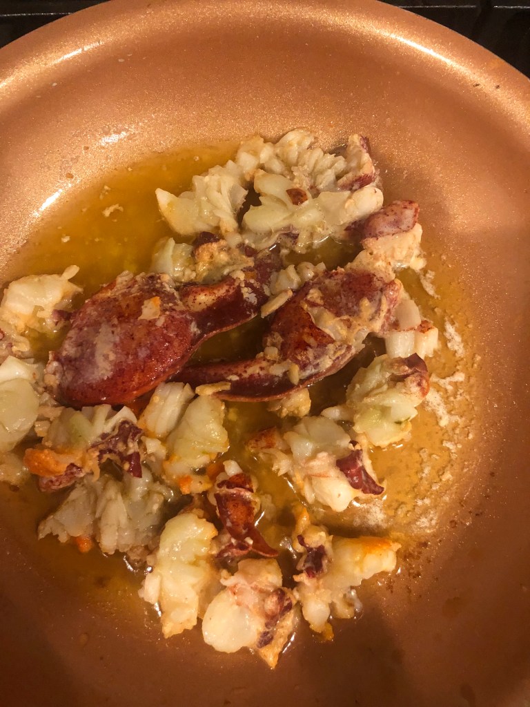 1 1 1/2 pound lobster, par cooked and separated into meat and shell (Crosby’s Carb)