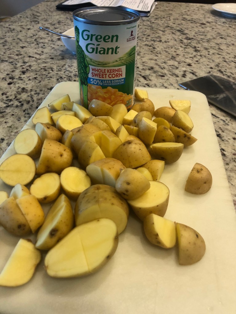 This “little lobster” is native to warmer waters, mostly around South and Central America. A sweet taste like a cross between lobster and crab. The sweetness shines in a chowder where a mirepoix. bay leaves, and some cayenne seasoning warm you up on a cold day. Now, I get a small 1 1/2 pound Maine lobster and break it down to enhanced the lobster flavor. Oh, and the sweet lobster tail and claw meat don’t hurt anything. Then some texture with corn and potatoes to make it seem like a New England lobster bake in a bowl. I hope you like it.