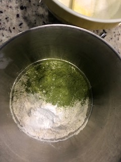 In bowl 2 add flour, matcha, baking powder, allspice, clove, and salt.