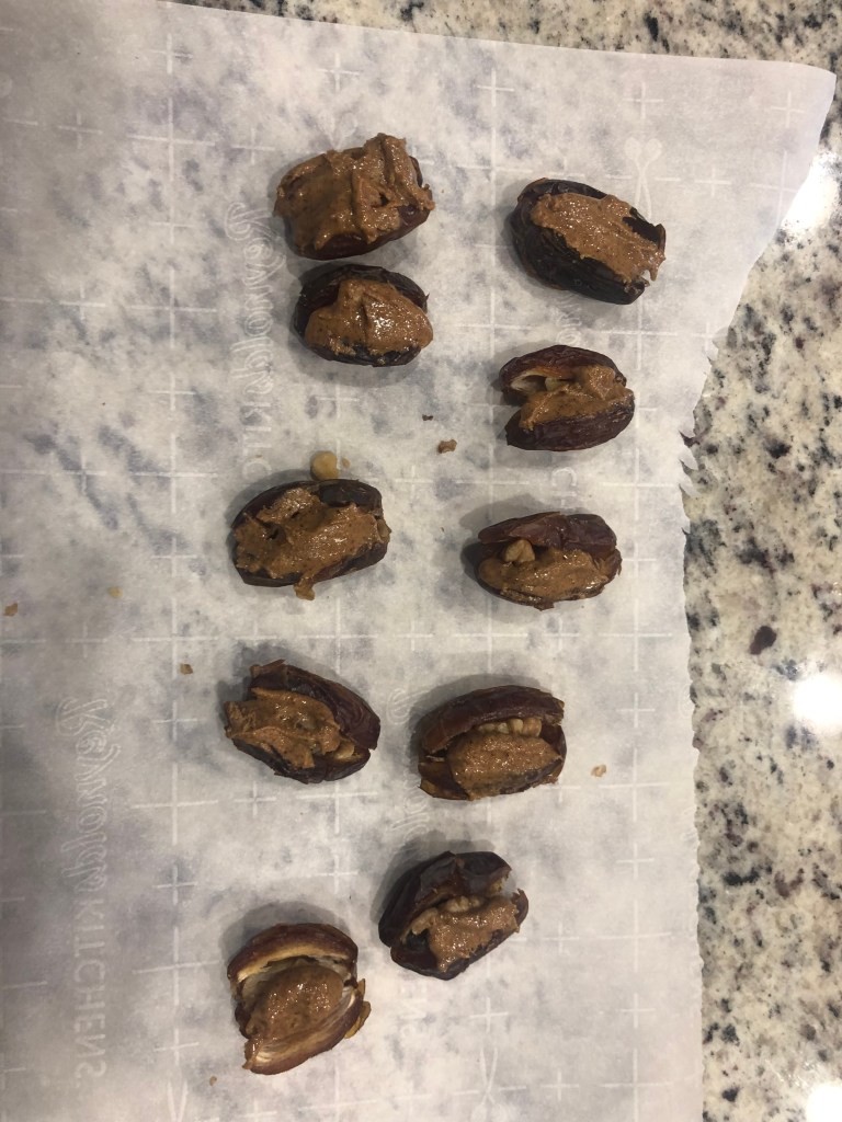 I don’t remember where I saw this, but I have a hiker daughter and a walker wife who both do long hikes and need energy. You have dates, walnuts, almond butter, and dark chocolate. A three bit energy bomb. I hope you like it.