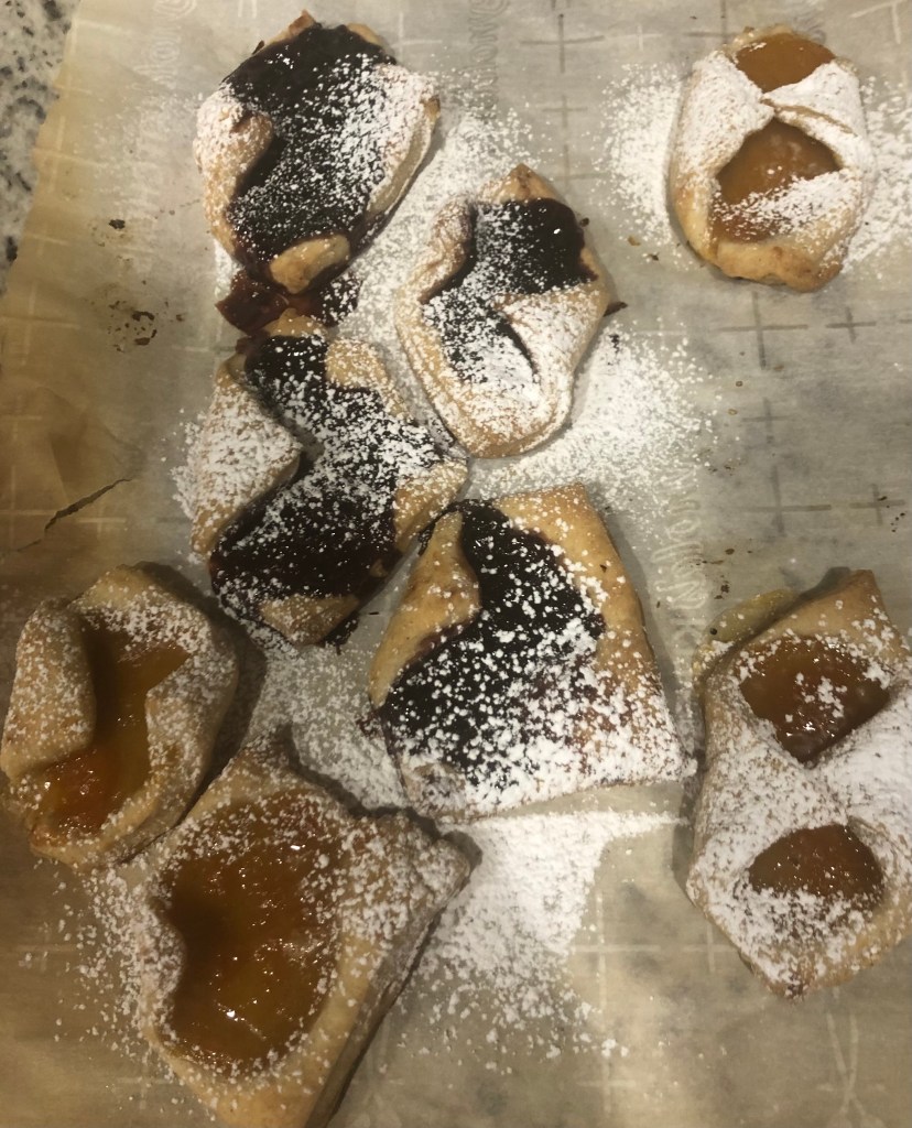 Traditional Eastern European holiday dessert. A simple pastry filled with a variety of fruit jellies and jams, and baked to a wonderful golden brown. I added some spice to the dough for more flavor. Happy holidays, I hope you like it.