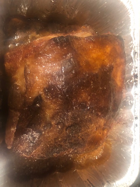 I had offered to do pulled pork for my friends at Crosby’s Crabs. Here was my problem: rain and temperature dropping from 51 to 23. So I had to go hybrid -some cook time in the oven and some on the Webber. The last thing I wanted was to be in snow/freezing rain in zero degree weather before Christmas. So while the darkness was happening, I started the pork in the oven, and when the rain stopped, a couple of hours on the Webber. I hope you and the people at Crosby’s like it.