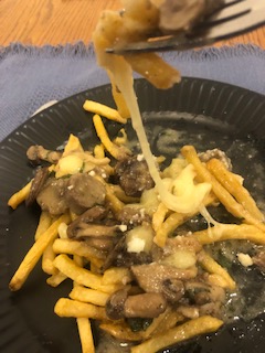 Why sorta Irish poutine? Whiskey, lamb, and potatoes of course. What is more Irish than that?Classic cheese curds come to the party along with mint and basil. Some chicken stock and we have a hearty party food or dinner. The whiskey brings out the lamb, and who doesn’t like cheese fries? I hope you like it.
