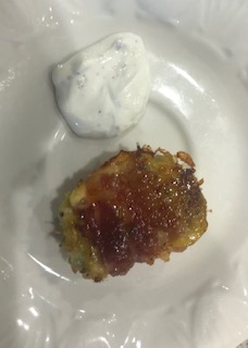 I have a new secret weapon in the fight against flavorless food: nettles from Seek Lavender from Culpepper, VA. Their flavor is a cross between parsley, a baby chive, and I pick up another almost anise note but not really. I know it brought the flavor of my zucchini tots way up. I used it both in the tot and the dip. I hope you like it.