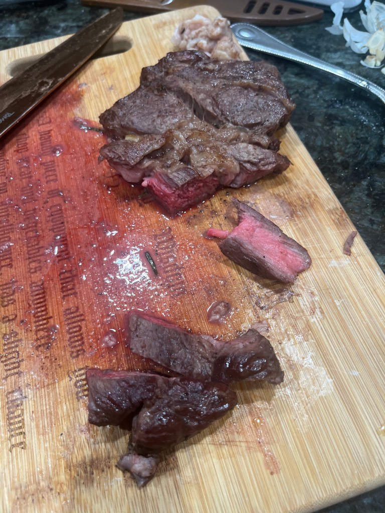 I gave my son-in-law a waygu chuckeye steak that I got from Ovoka Farm. He decided to do a blind taste test without his wife knowing. The chuckeye was competing against a mega mart top-of-the-line ribeye. Both steaks were cooked in the same cast iron pan, both coated with salt and pepper, both seared and basted with butter, garlic, and rosemary. The result: waygu by a mile. Buttery and melt-in-your-mouth delicious. Check out Ovoka Farm and the chuckeye steak.