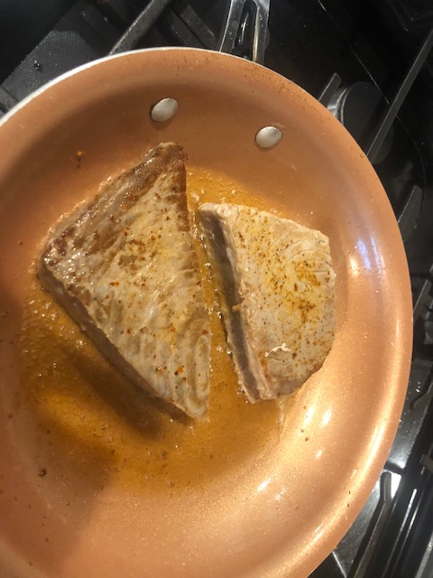 Sear tuna for 2-3 minutes on each side.
